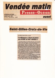 MÉRIGOT Bernard, « Saint-Gilles-Croix-de-Vie. Vivre au Pays au XVIIIe siècle », Vendée matin, 9 août 1990.